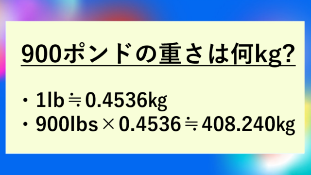 | 140ポンドの重さ | 140lbs | 約63.50kg |