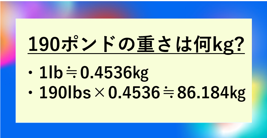 それではまず、190ポンドが何キロになるのかという結論から解説していきます。