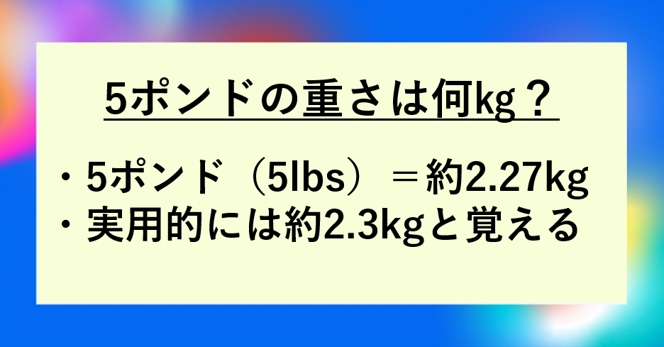 5ポンド ≒ 2.27kg ≒ 2268g ≒ 約2.3kg ≒ 約2270g