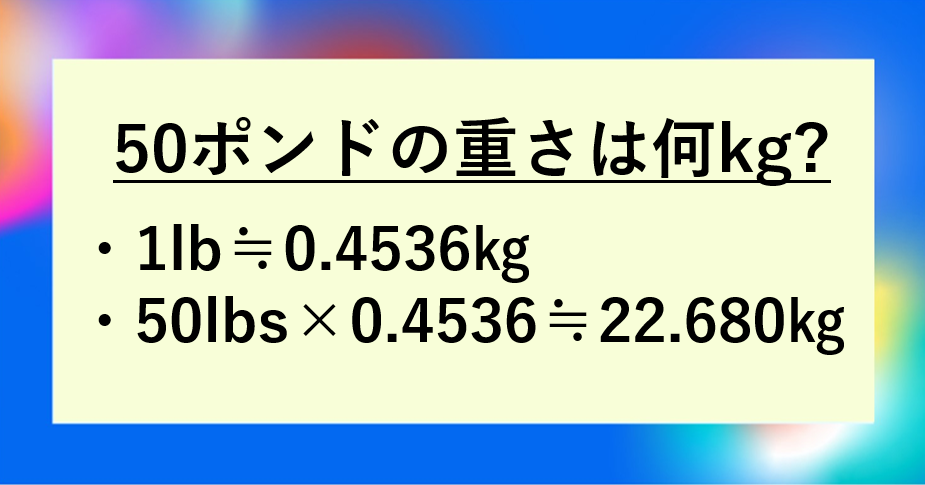 50ポンド(50lbs)は約22.68キロ(kg)!まず結論を確認しよう