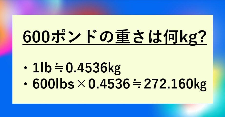 600ポンド(600lbs)は約272.16キロ(kg)!まず結論を確認しよう
