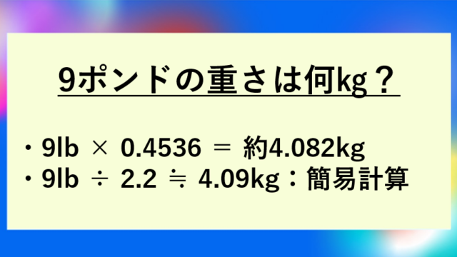 換算のコツは「ポンド ÷ 2.2」または「ポンドの半分から1割引き」で、暗算でも使いやすく素早い場面判断に役立ちます。