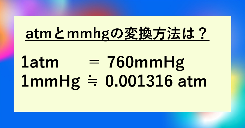 気圧や圧力の計算を行う際、atm(大気圧)とmmHg(水銀柱ミリメートル)という2つの単位が頻繁に登場します。