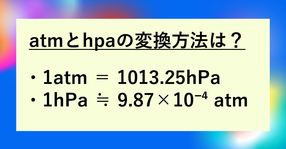 大気圧(atm)とhpaの単位変換・換算方法は?1atmは何ヘクトパスカル?1ヘクトパスカルは何atm?例題付の計算方法