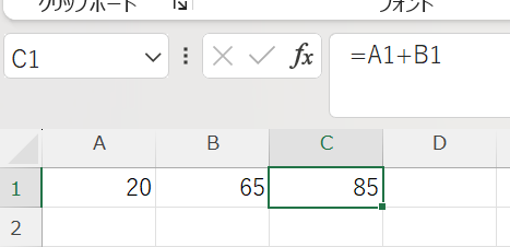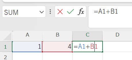 ③ 計算したい数式や関数を入力する(例:=A1+B1 や =SUM(A1:A5))