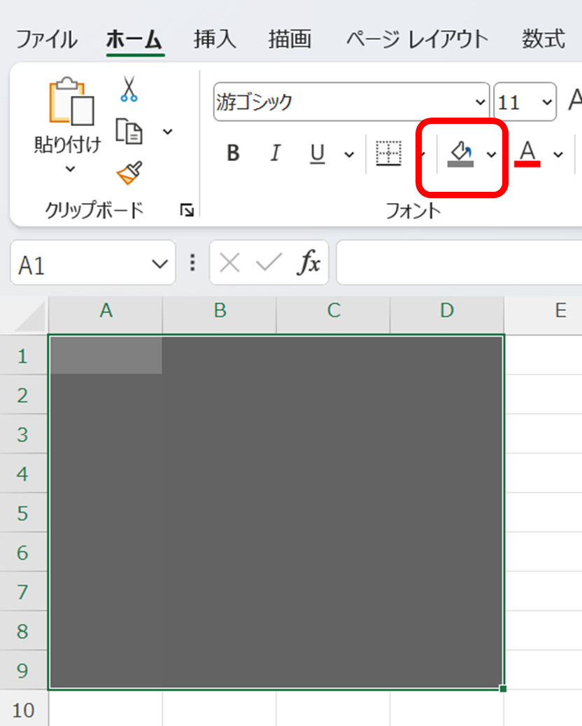複数のセルにまたがってグレーが設定されている場合は、Ctrl+Aで全選択してから操作すると効率的でしょう。