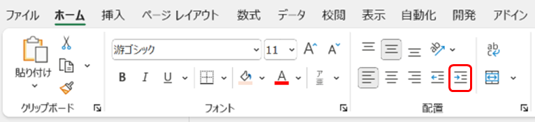 手順3:「インデントを増やす」ボタン(右向き矢印のアイコン)をクリックする