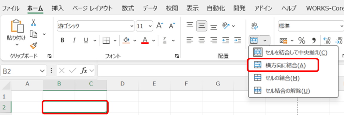 | セルの結合 | 見た目の分割・2段レイアウト | 周囲を結合して相対的に分割 |