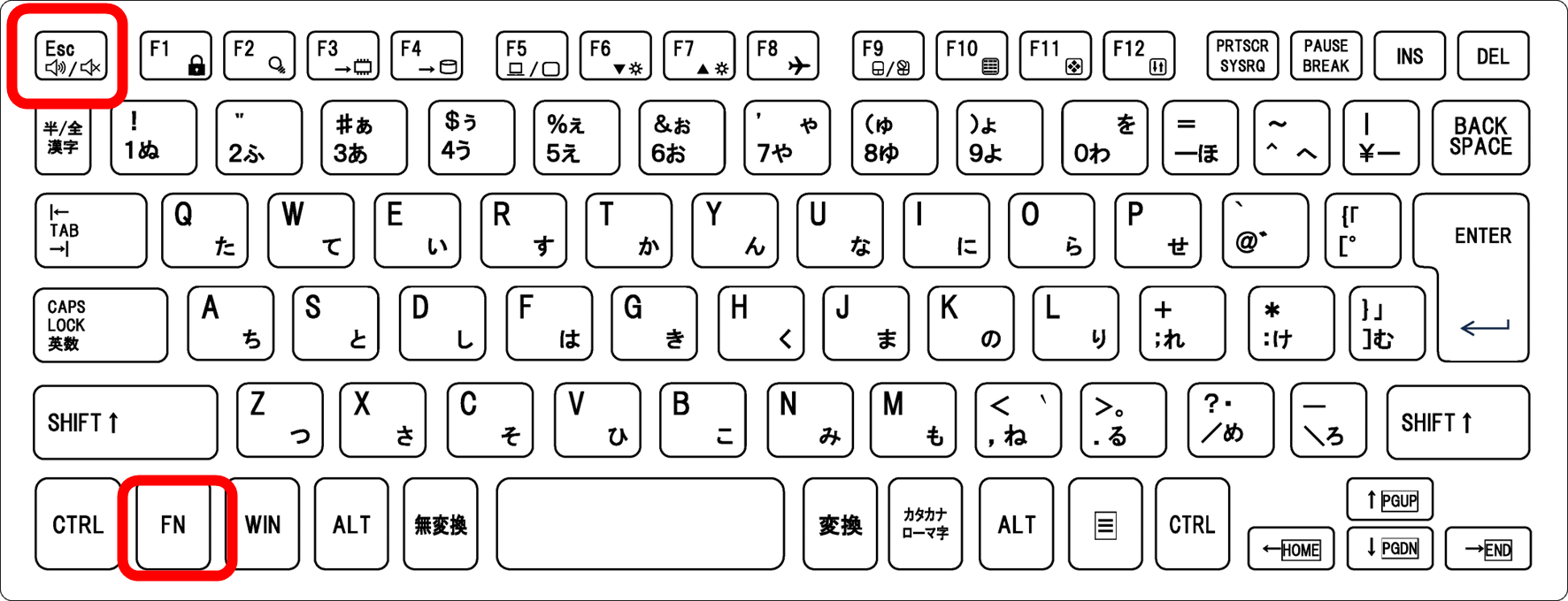 →Fnキーとの同時押しが必要