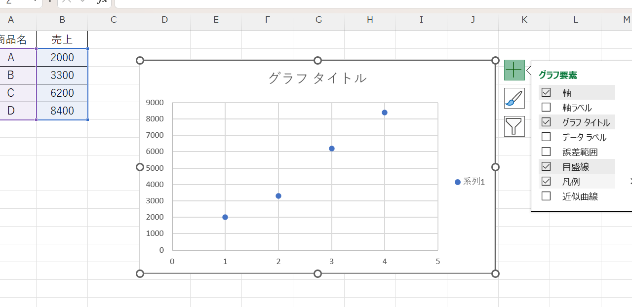 | 系列名のセルが空白 | 系列1、系列2 | セルに項目名を入力 |