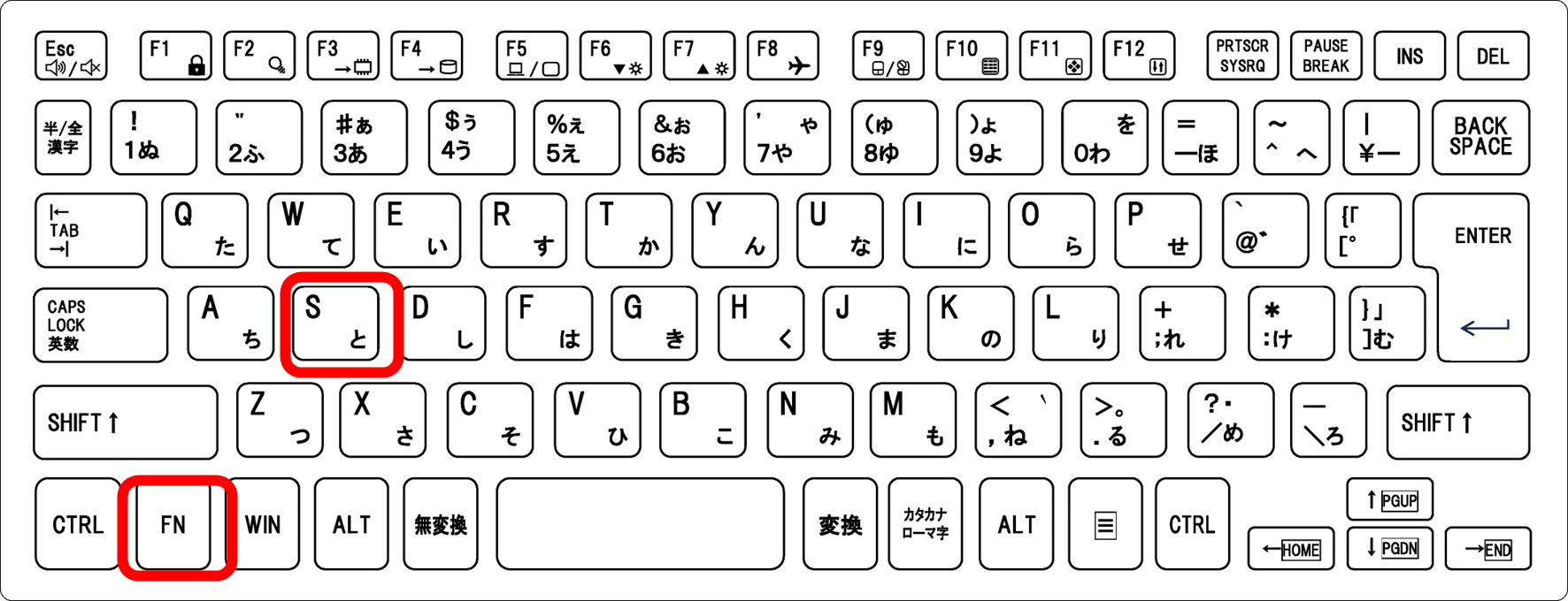 | その他 | Fn+S、Fn+C、Fn+K | いずれかを試してみる |