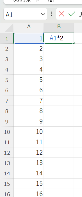 B1セルに「=A1*2」という数式が入っている場合、B2にコピーすると「=A2*2」、B3にコピーすると「=A3*2」というように、参照先が自動的に1行ずつずれます。