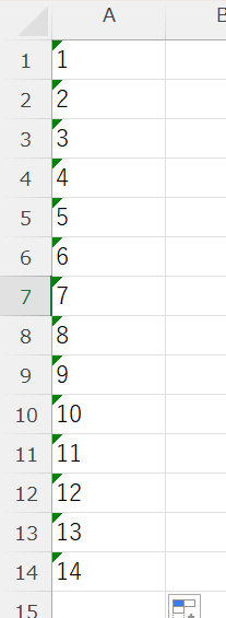 | 1 | 緑の三角があるセルをクリック | セルが選択される |