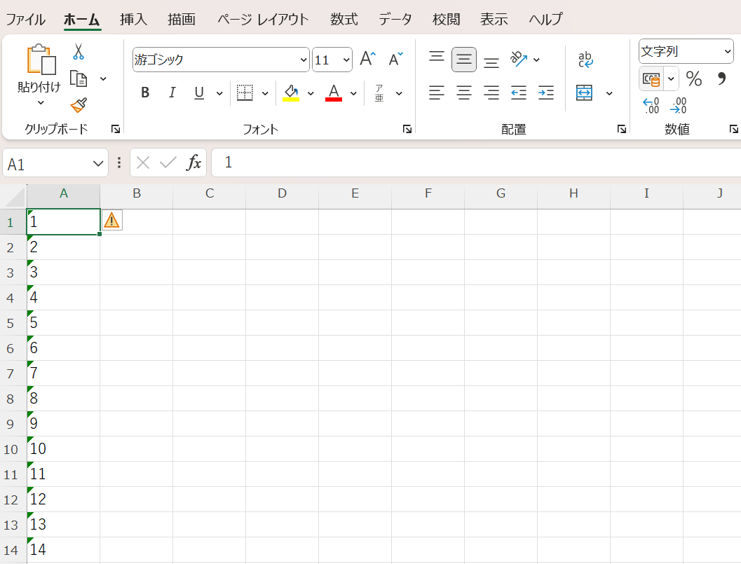 緑の三角マークが表示される原因はいくつかありますが、最も一般的なのは「数値が文字列として保存されています」というエラーです。
