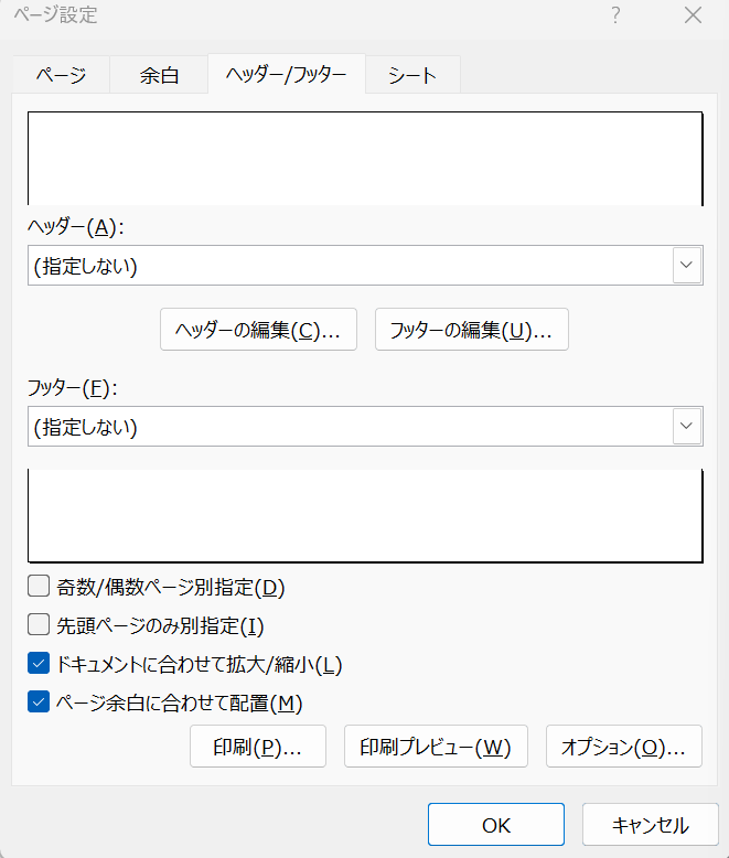 → 印刷時にヘッダー・フッターが出力されなくなる