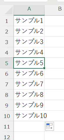 例えば、A1からA10までデータが入っている状態で、A5に新しいデータを追加したい場合、A5セルを選択して右クリックし、「挿入」を選択します。