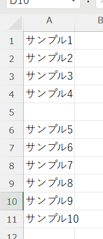 | A1:商品A、A2:商品B、A3:商品C | A2を選択 | A1:商品A、A2:(空白)、A3:商品B、A4:商品C |