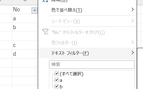 ④行番号と列ヘッダーが表示されることを確認する
