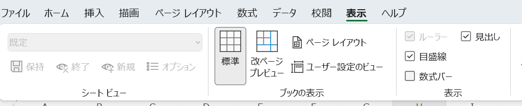 チェック②:「表示」タブ→「見出し」のチェックを確認する