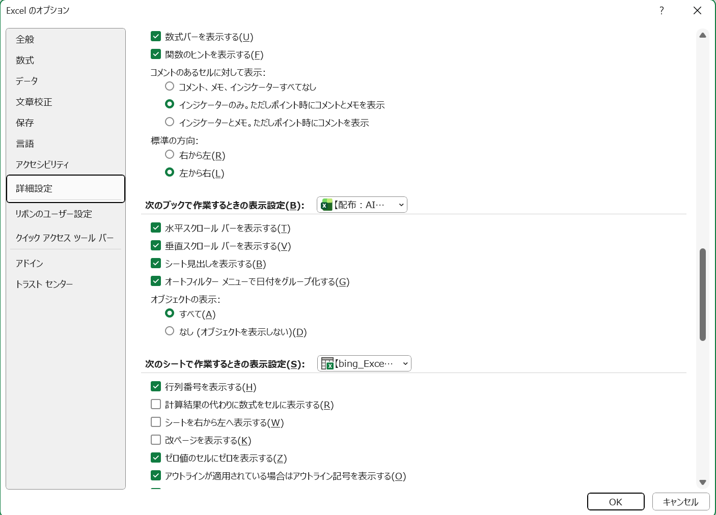 「Excelのオプション」ダイアログが開いたら、左側のメニューから「詳細設定」を選択します。