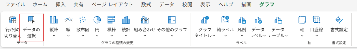 グラフ作成後にデータ範囲を変更したい場合は、「データの選択」または直接範囲ハンドルをドラッグする方法で対応できます。