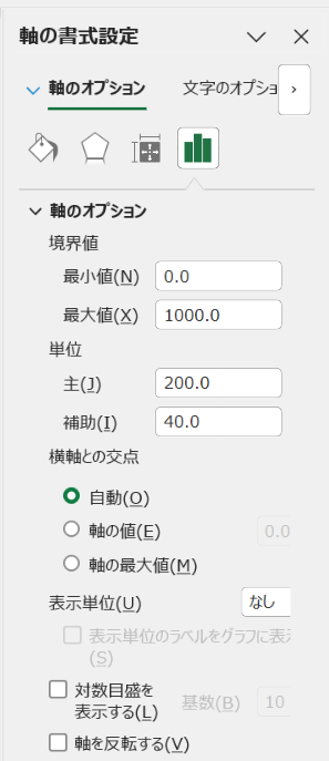 Y軸(縦軸)の最大値・最小値・目盛り間隔を変更する方法