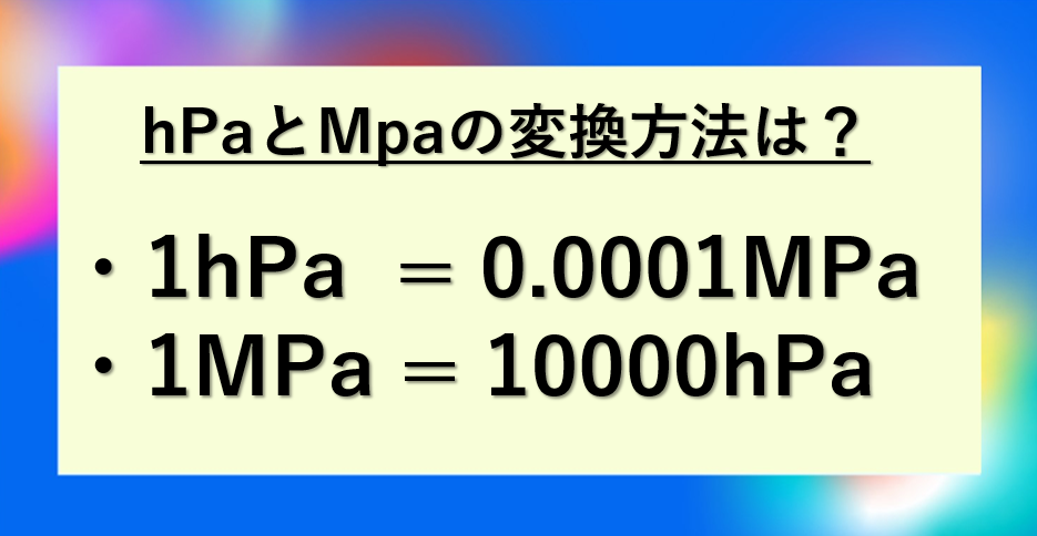 MPaの値 = hPaの値 × 0.0001