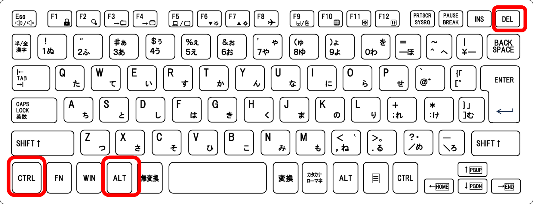 | Ctrl+Alt+Delete | セキュリティオプション画面を表示 | ロック画面から進めない時 |