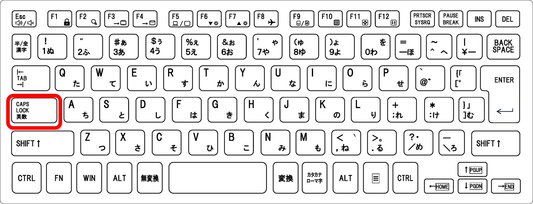 | CapsLock | 大文字・小文字が逆転 | Shift + CapsLock | インジケータランプ or 警告メッセージ |