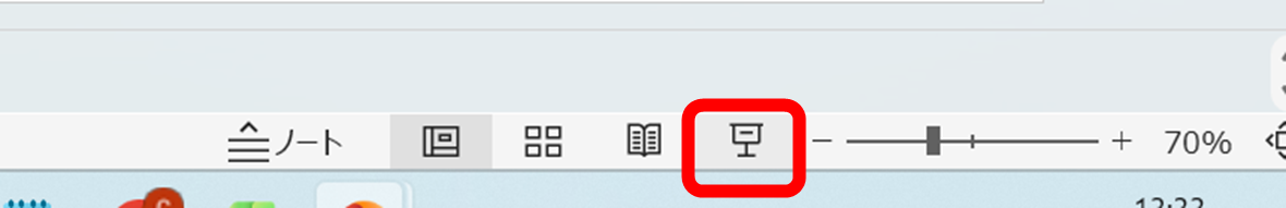ステータスバーのボタン 選択中のスライドから マウス操作だけで完結できる