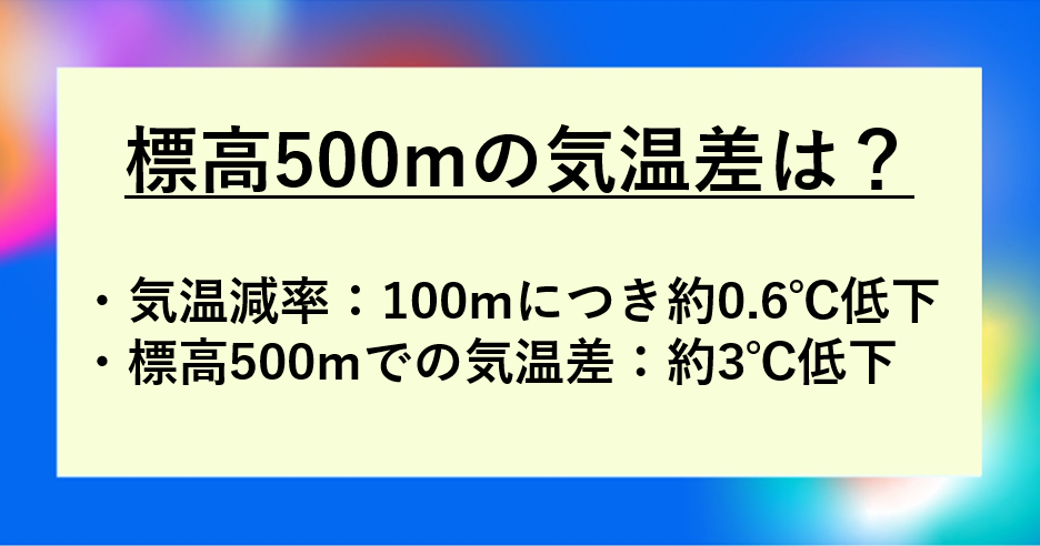 それではまず、標高500mにおける気温差の基本について解説していきます。